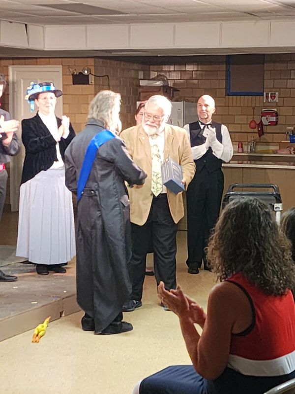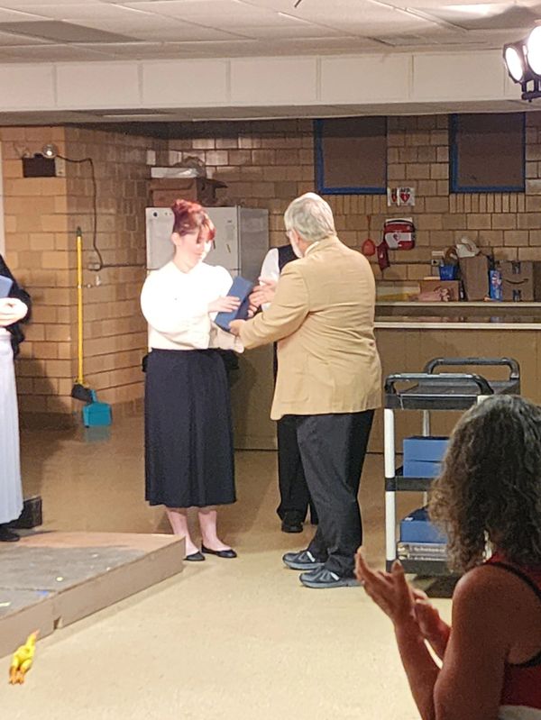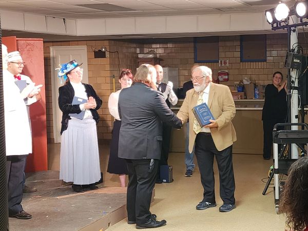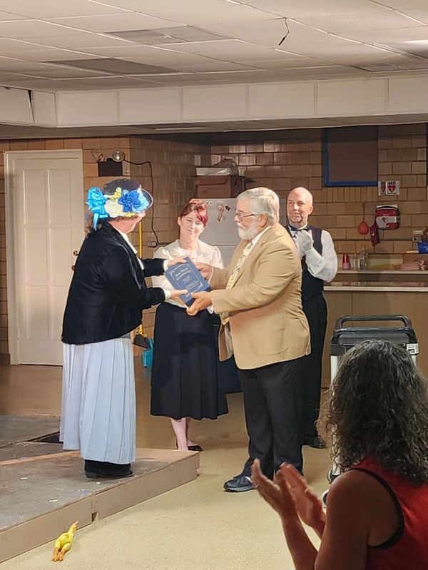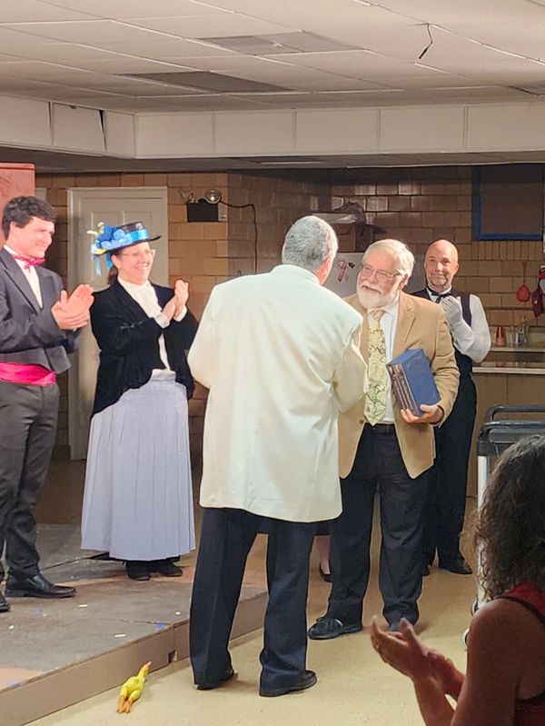 Dr. Robert Garrity, Ph.D and semi-retired professor of Philosophy and English at St. Joseph's College. Bob served on The Carnegie Players Board, directed local productions and appeared in several shows. The program noted that Bob was a walking encyclopedia of knowledge in regards to theater and everything that is related. It also said, "Bob, we thank you for your dedication to theater in not only Jasper County, but everywhere you have lived. Gloria, we thank you for sharing Bob's time with us."